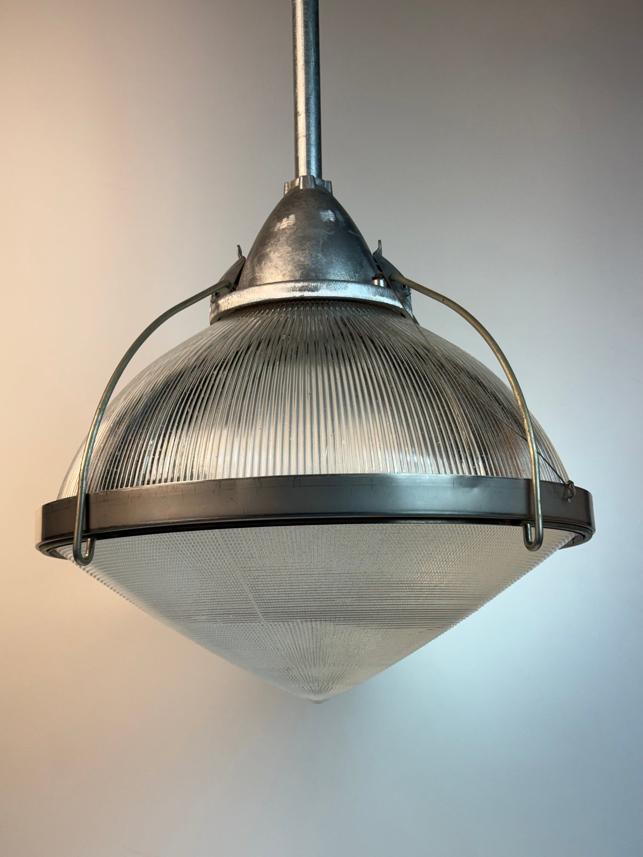 Holophane 20" Industrial Light Fixture 12 Available We also have 8 smaller 11” diameter versions available These currently hang about 57” overall but can be made to any length needed...